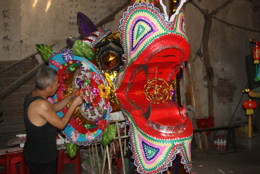 省级传承人刘桂生扎制旱龙舟。鄂州市群众艺术馆供图