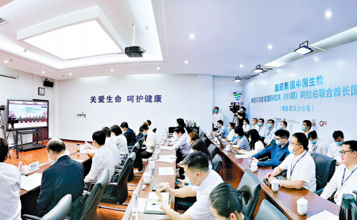 长江日报讯(记者陈洁 通讯员王玲)6月23日,国药集团中国生物新冠灭活疫苗国际临床(Ⅲ期)阿拉伯联合酋长国启动仪式在中国北京、武汉、阿联酋阿布扎比三地,以视频会议方式同步举行,阿联酋卫生部长向国药集团中国生物颁发了临床试验批准文件。