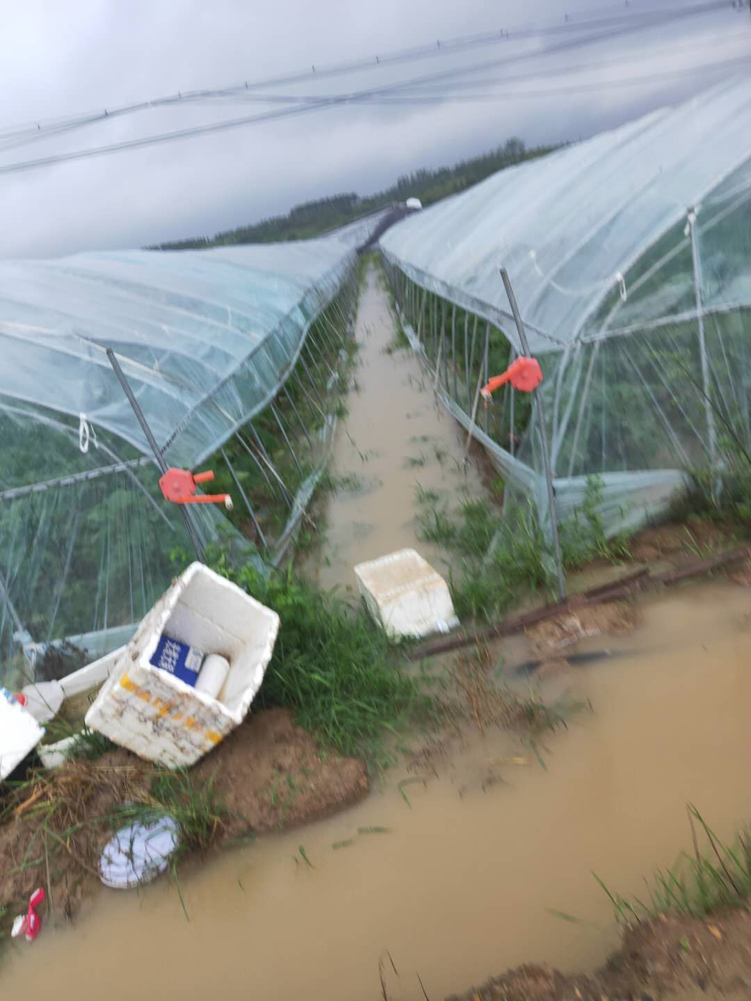 6月27日晚,一场大雨将曾都区万店镇小河沟村万亩蔬菜基地水淹,损失惨重。当地村委会组织村民自救。