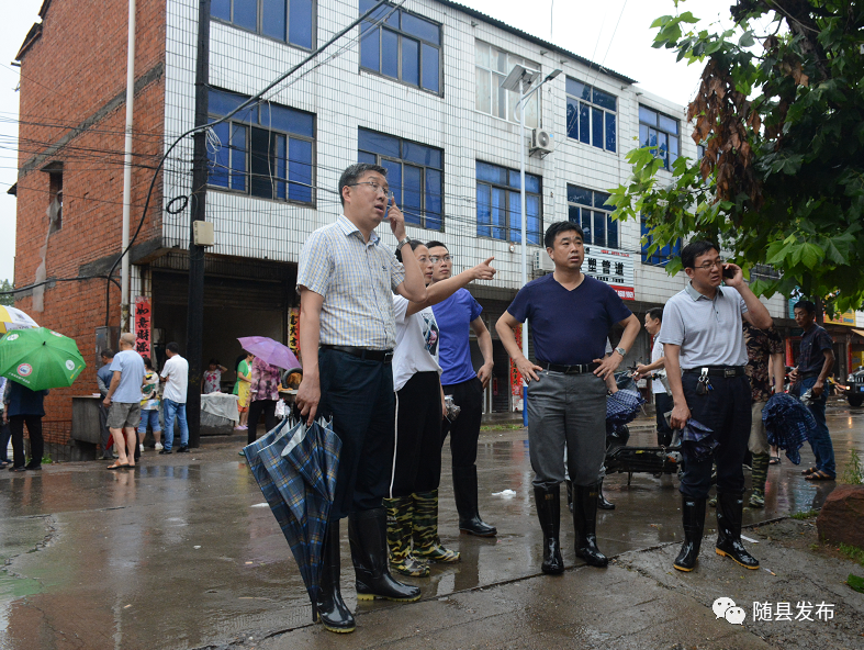 当天,随县应急管理局、水利和湖泊局负责人一同查看灾情,参与抢险救灾工作。