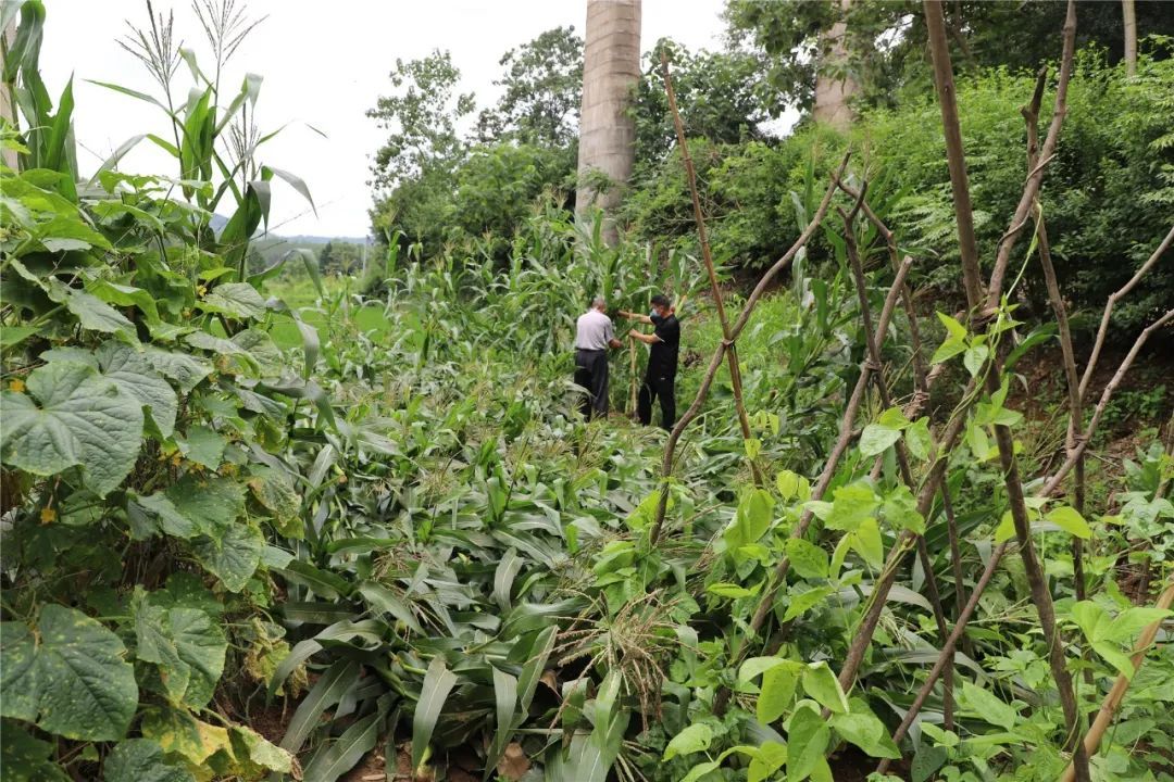 在邱畈村,驻村第一书记邓大勇和村干部张德培一大早来到包保贫困户张世振家里,帮忙给倒伏玉米扶起扎把。