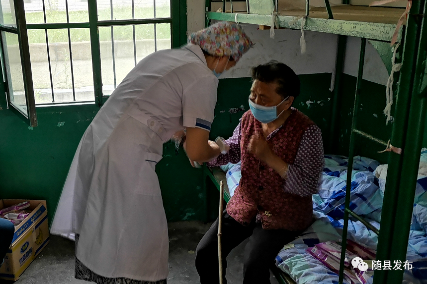 6月29日早晨7时,均川镇卫生院医生到救灾安置点为居民做体检,确保群众身体健康。(金通)