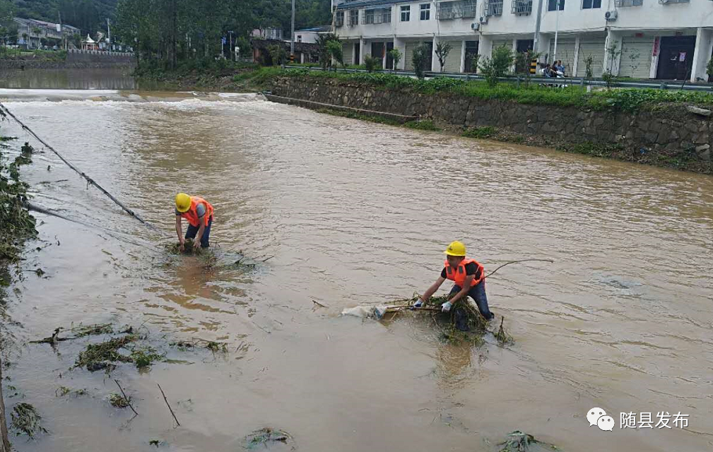 6月29日,小林镇清除河坝、桥梁阻挡物,确保泄洪渠道畅通。(刘洋雨)