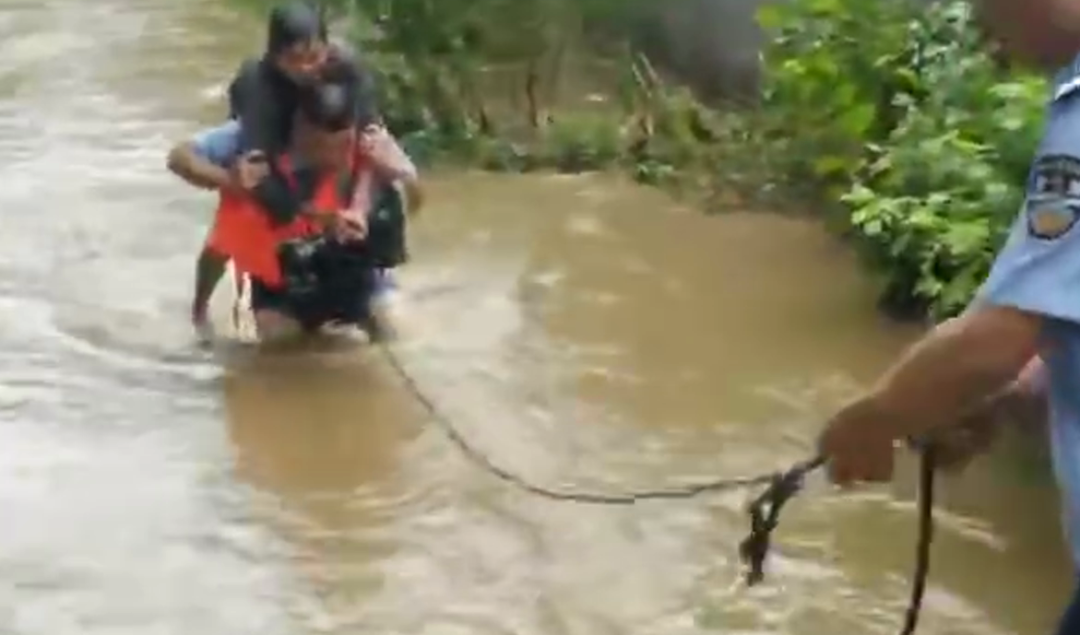 “昨天上午10点半左右,我和派出所教导员程新正在清筑城村察看灾情,突然接到派出所指令,三组村民报警称有两人被困水中,请求救援。”周鹏说,接到指令后,他们绕开被水淹没的通村公路,火速赶往被困对象方向。