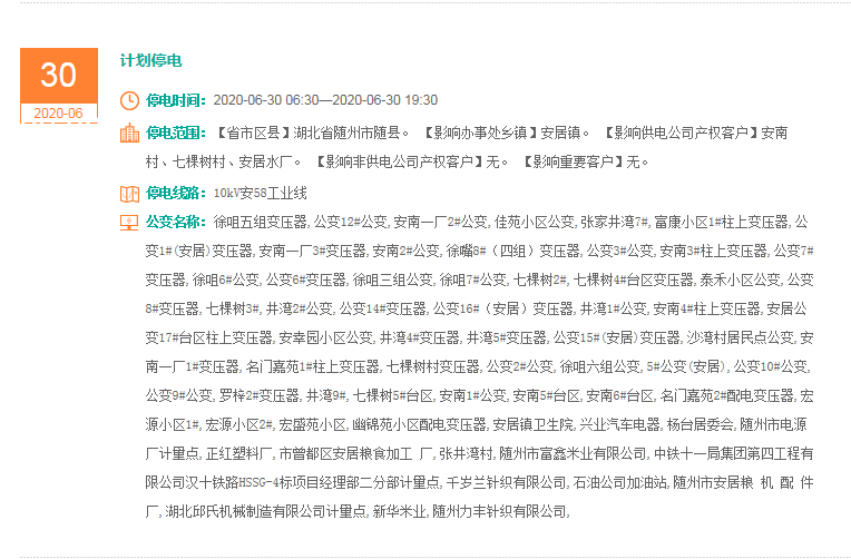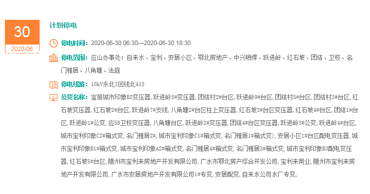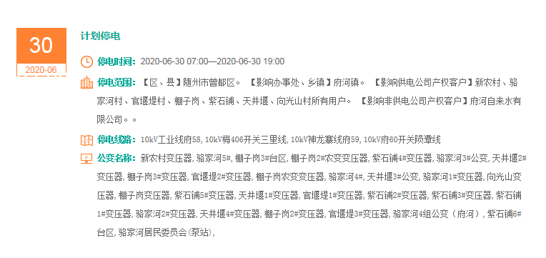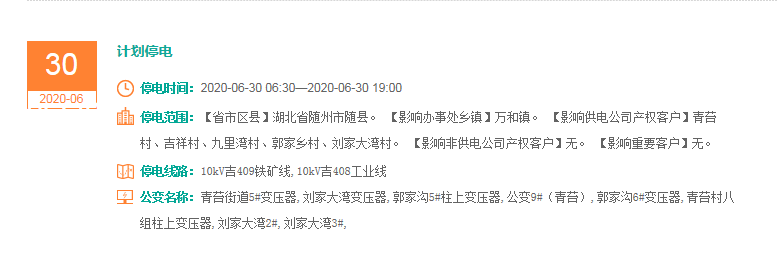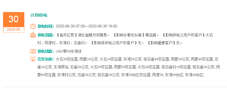 停电时间:2020-06-30 06:30—2020-06-30 19:00