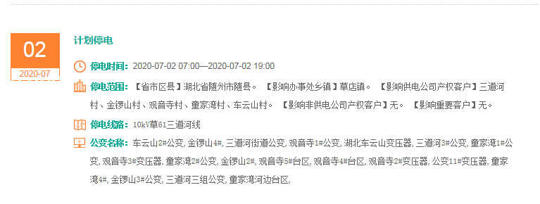 停电时间:2020-07-02 07:00—2020-07-02 19:00