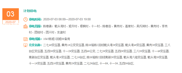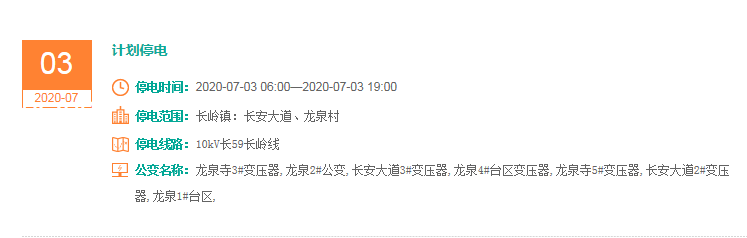 停电时间:2020-07-03 08:00—2020-07-03 19:00