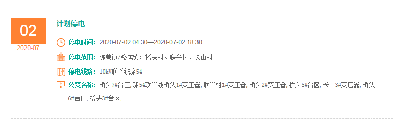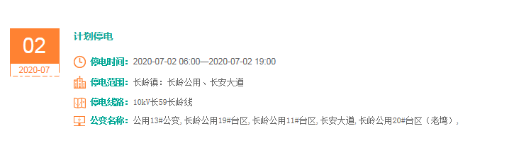 停电时间:2020-07-02 06:00—2020-07-02 19:00