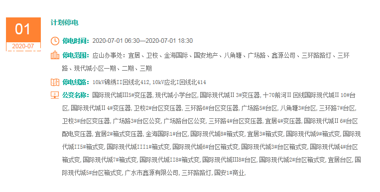 停电时间:2020-07-01 04:30—2020-07-01 18:30