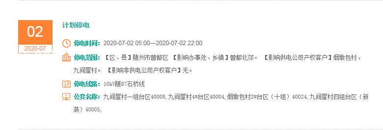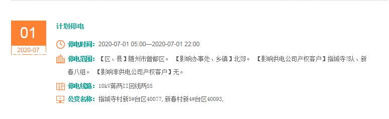 停电时间:2020-07-02 05:00—2020-07-02 22:00