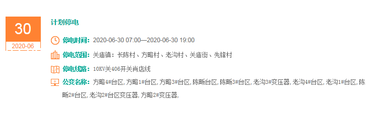 停电时间:2020-06-30 06:30—2020-06-30 20:00