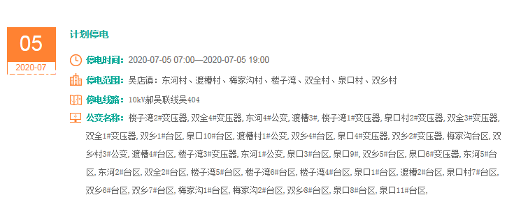 停电时间:2020-07-05 07:00—2020-07-05 19:00