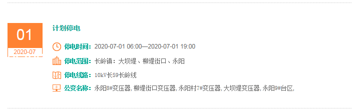 停电时间:2020-07-03 06:00—2020-07-03 19:00