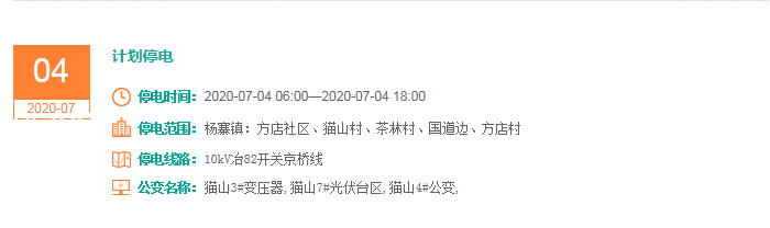 停电时间:2020-07-04 06:00—2020-07-04 18:00