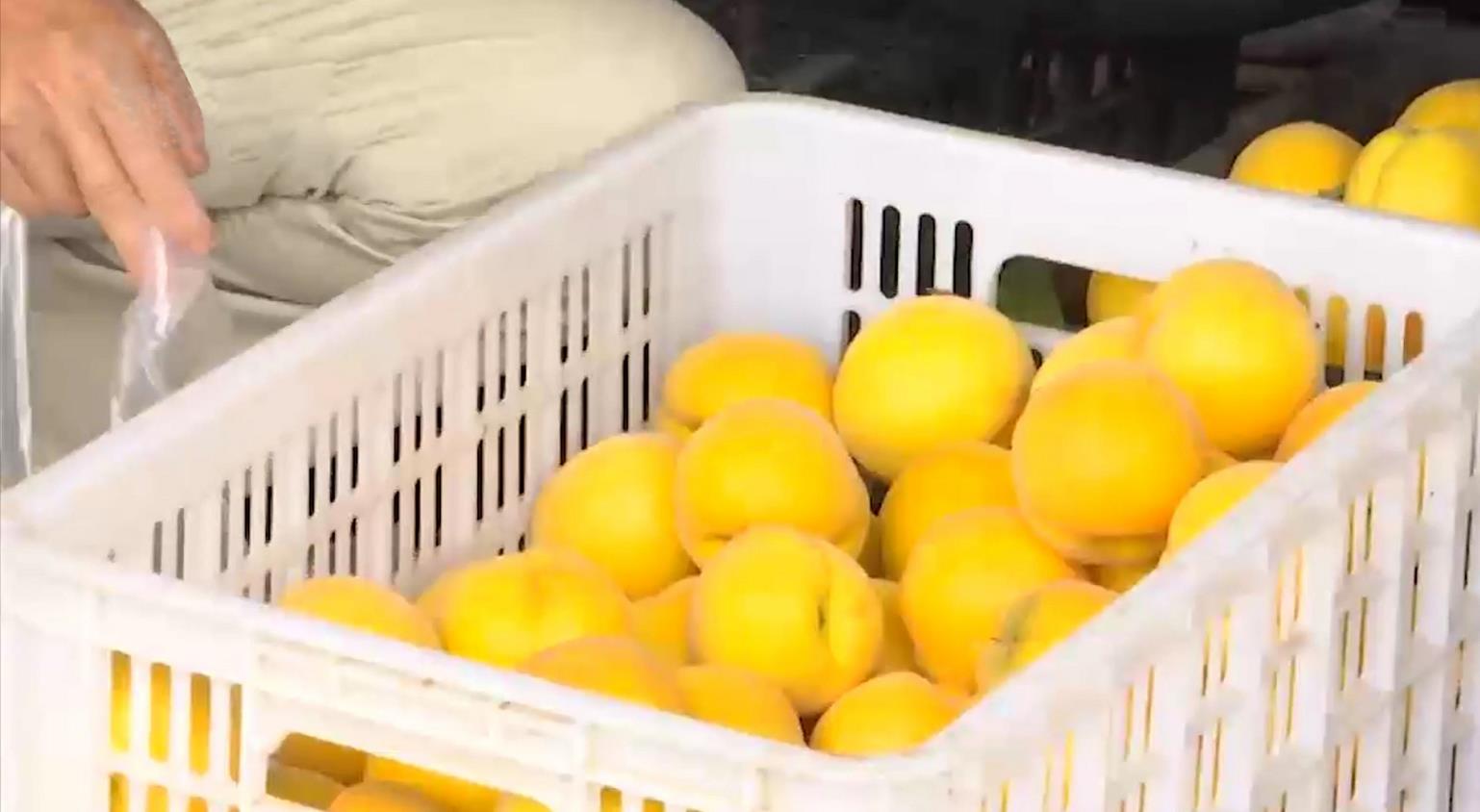 随县厉山镇套袋黄桃通过线下水果连锁超市、线上电商平台同步批量上市,在疫情对市场产生冲击的情况下,依然卖出了8元至12元一斤的好价钱,刚上市就销售了5000多件,40亩的黄桃预计可创收40万元。