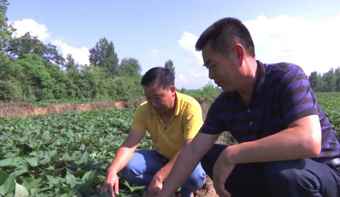 随县洪山镇农技服务中心主任 何建国:“红薯生长进入关键时期,如果雨水浸泡超过24小时,下面刚刚膨大的红薯,就会在土里面腐烂,所以我们要及时把田间的积水清沟排出去。”