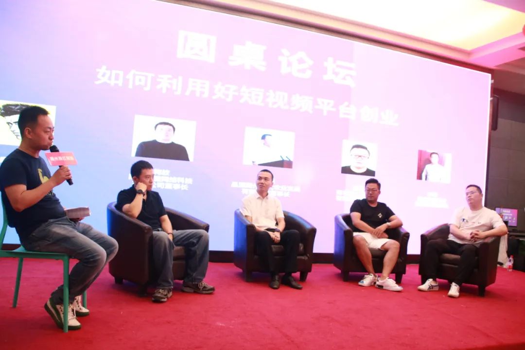 随州百度负责人梅放、品源农业负责人罗圆、随州抖音负责人李雄、大侠传媒负责人金磊就如何利用好短视频平台创业进行了圆桌分享,筋斗云SPACE负责人孔伟担任主持人。
