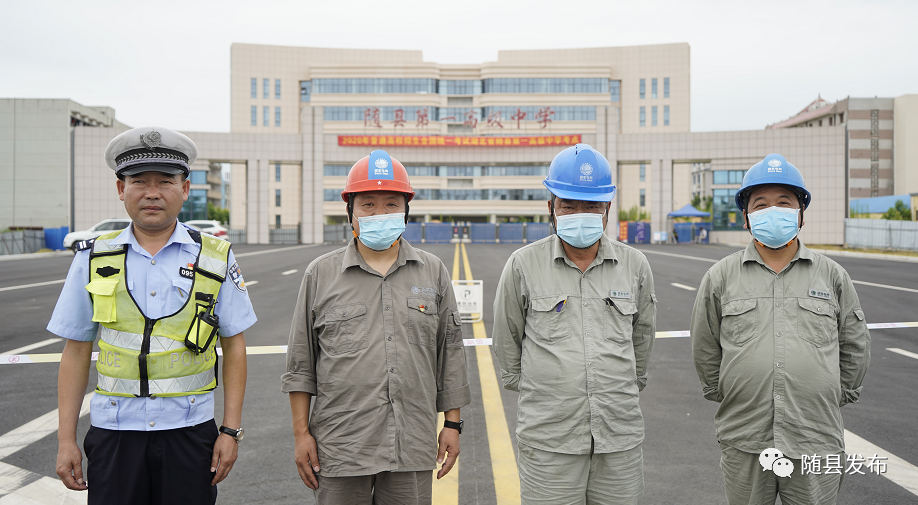(随县一中门前,交警与供电公司人员联合值守,确保考生考试顺利)