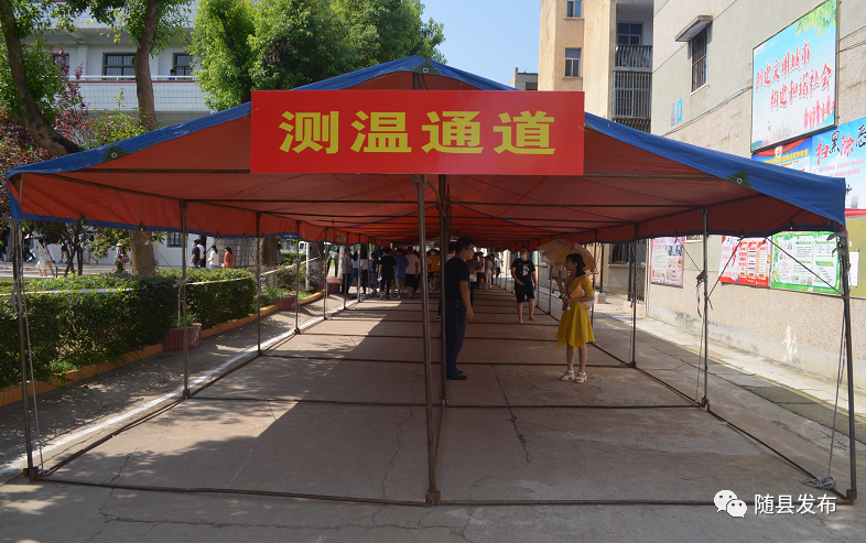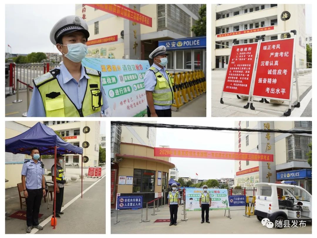 (在随县厉山镇第三初级中学,民警严守校门,为高考学子保驾护航)