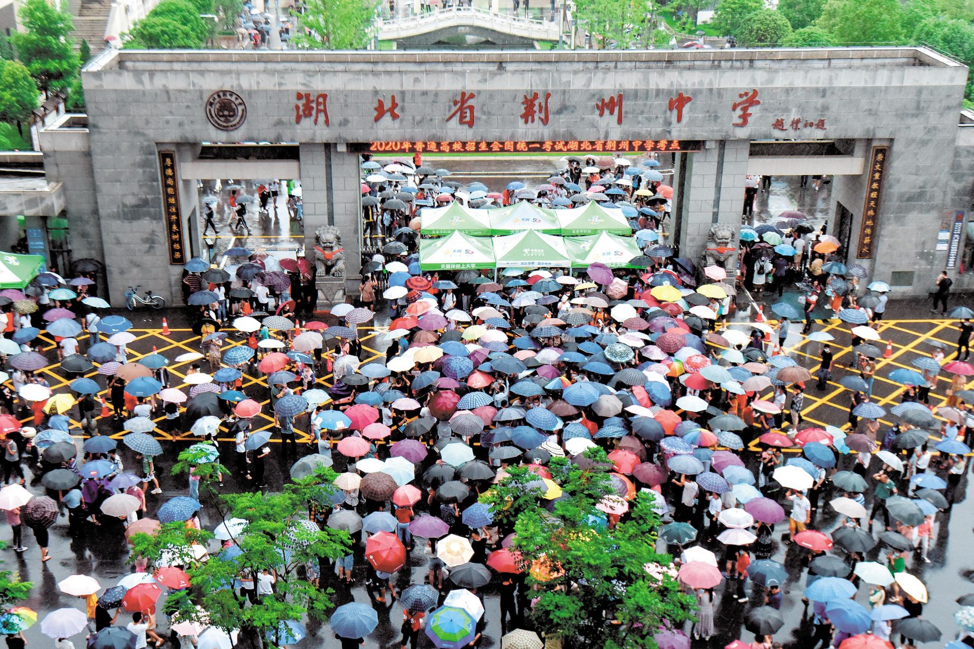 在雨情较严重的武汉,高考首日平稳顺利,无突发事件和考务偶发事故,无体温异常发热考生,未启用备用隔离考场。