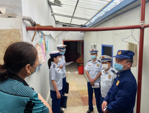 主要隐患:四楼采用泡沫彩钢板搭建员工宿舍。