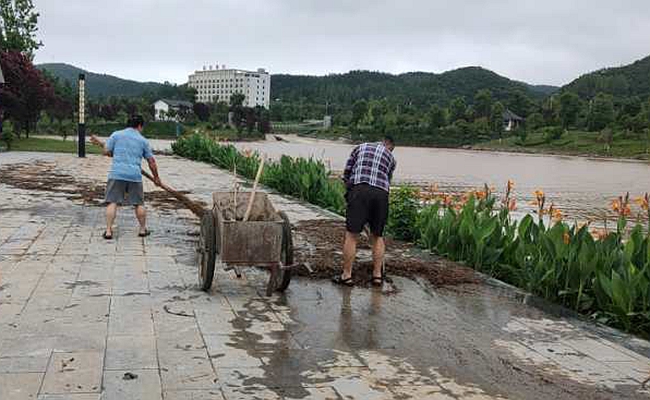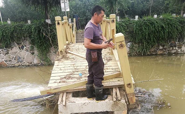 在喻家湾村,工程车辆正在对受损的河道以及河道两边的河堤进行修复,此次水灾导致喻家湾村农作物受灾3257亩、部分水利工程及河道都有不同程度的受损、受灾群众达1571人。水灾过后,喻家湾村积极组织人力物力投入到灾后重建工作中去,村两委会迅速查看本村农民受灾的情况,截至目前,已经修复十余处水毁工程。