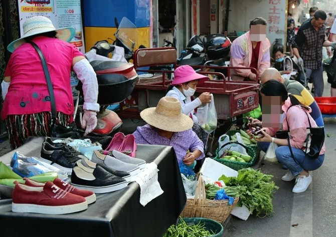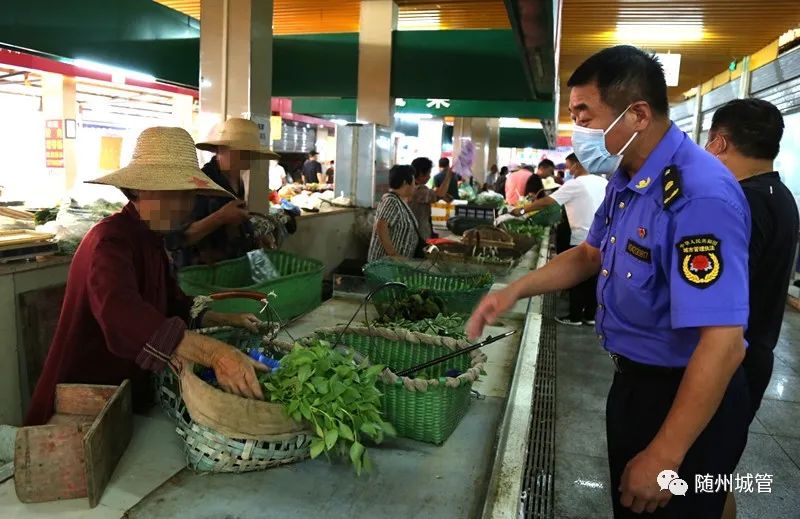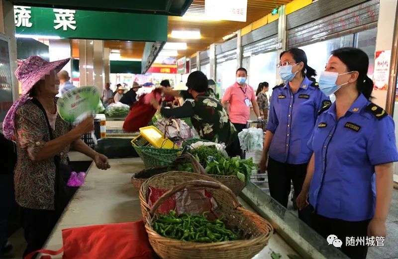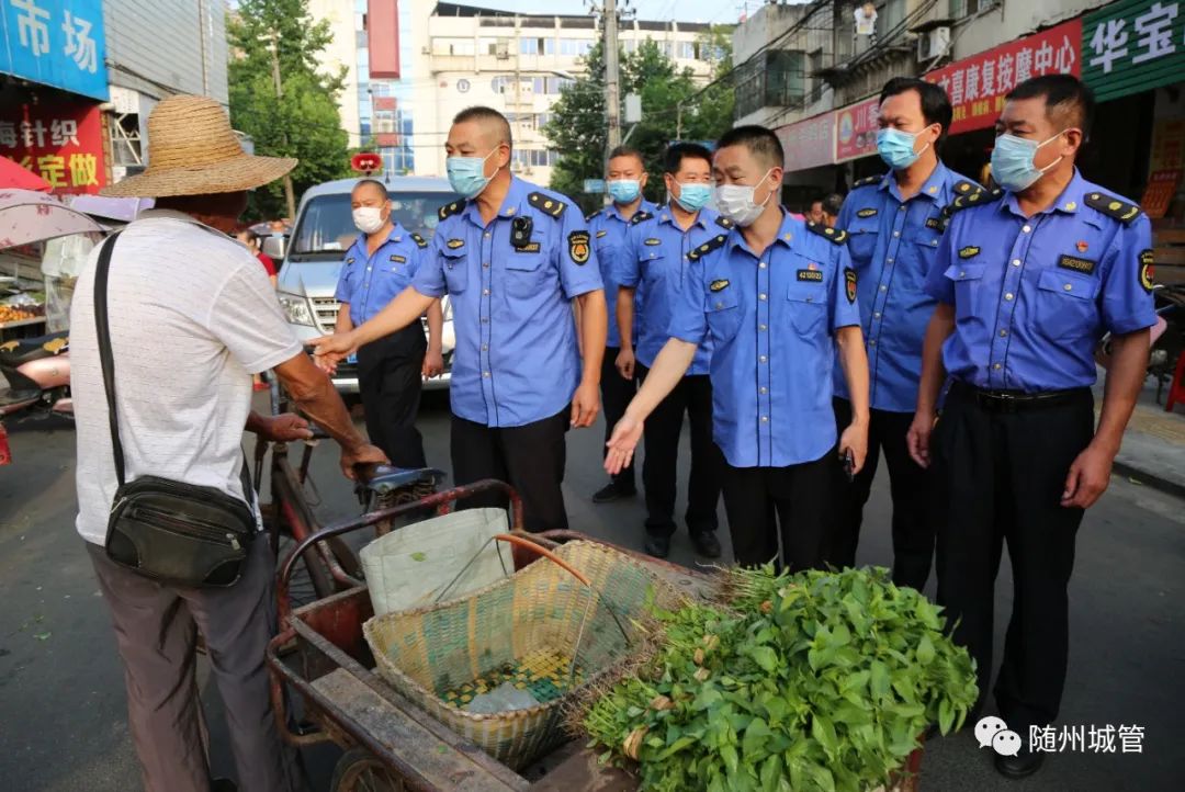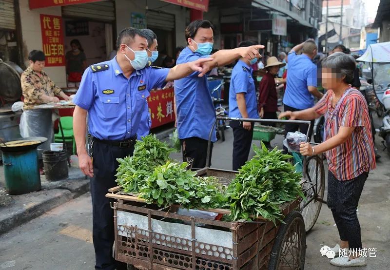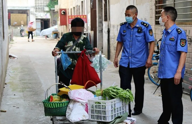 “老同志,在路上卖菜既不安全,又影响大家通行,把篮子提到市场里面去,有专门的免费摊位留给你们”。