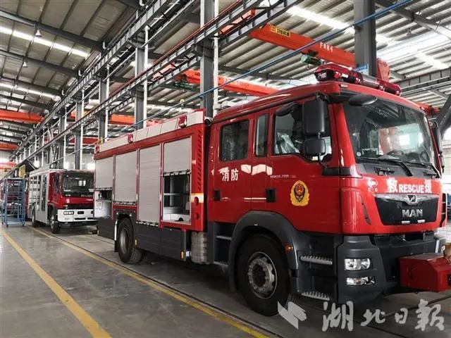 车间一侧,工人们正在赶制一台德国曼底盘改装的压缩空气泡沫消防车,高大的车身在生产线上十分抢眼。“这款消防车具有灭火作战效率高、流量大、射程远、功能齐备等优势,在行业内处于领先地位,是公司抢占高端消防车市场的拳头产品,单台售价达350余万元。”廖大勇说。