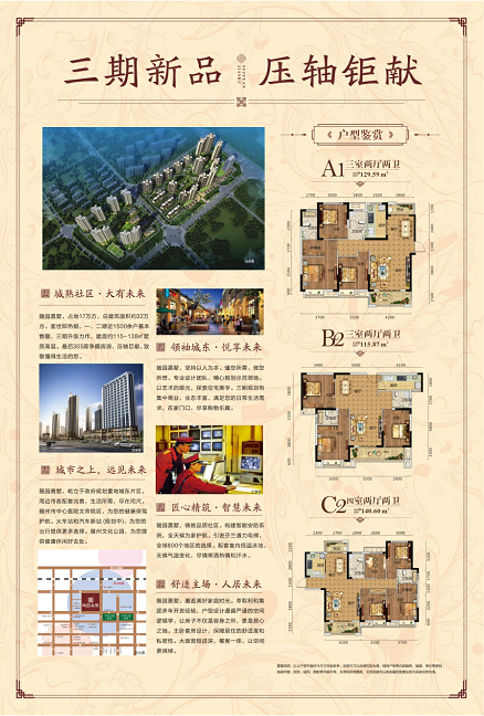三期升级力作,2020年载誉而归,一期二期售罄,在一、二期的设计理念上,对三期新品进行优化升级。积极听取业主的优良建议,对每个细节进行反复考量和论证,力争打造随州品质住宅。二期高层配套底商,满足业主入住后基本的日常生活需求,让生活更加方便快捷。同时项目三期规划有大商业,辐射整个城东片区,让业主在家门口,享受购物休闲一条龙的欢乐时光。户型设计更合理,建筑面积约115-187㎡阔绰美宅,方正通透。多阳台多飘窗,让阳光与清风轻抚过每一寸空间,鉴赏春光风景。全双卫设计,动静区分,干湿分离,生活舒适有序。室内布局合理,动线流畅,全新演绎现代生活。