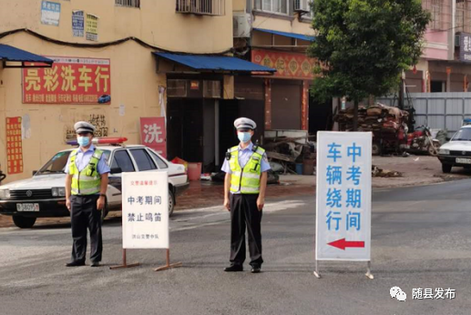 随县公安局交警大队全警动员,重点值守,科学管控,文明执法,热情服务,全力以赴保障中考期间道路交通安全。(戴玉平)
