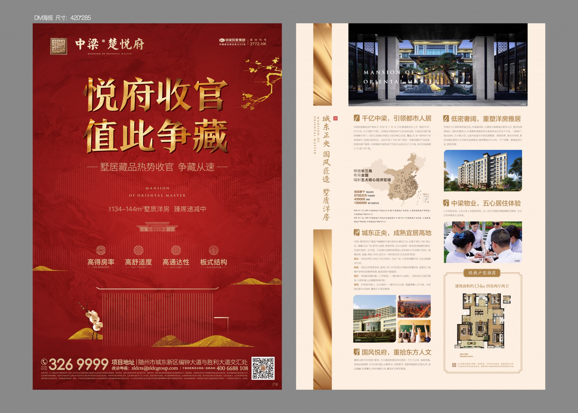 在售房型:133㎡臻品高层;建面约134-144㎡墅质洋房