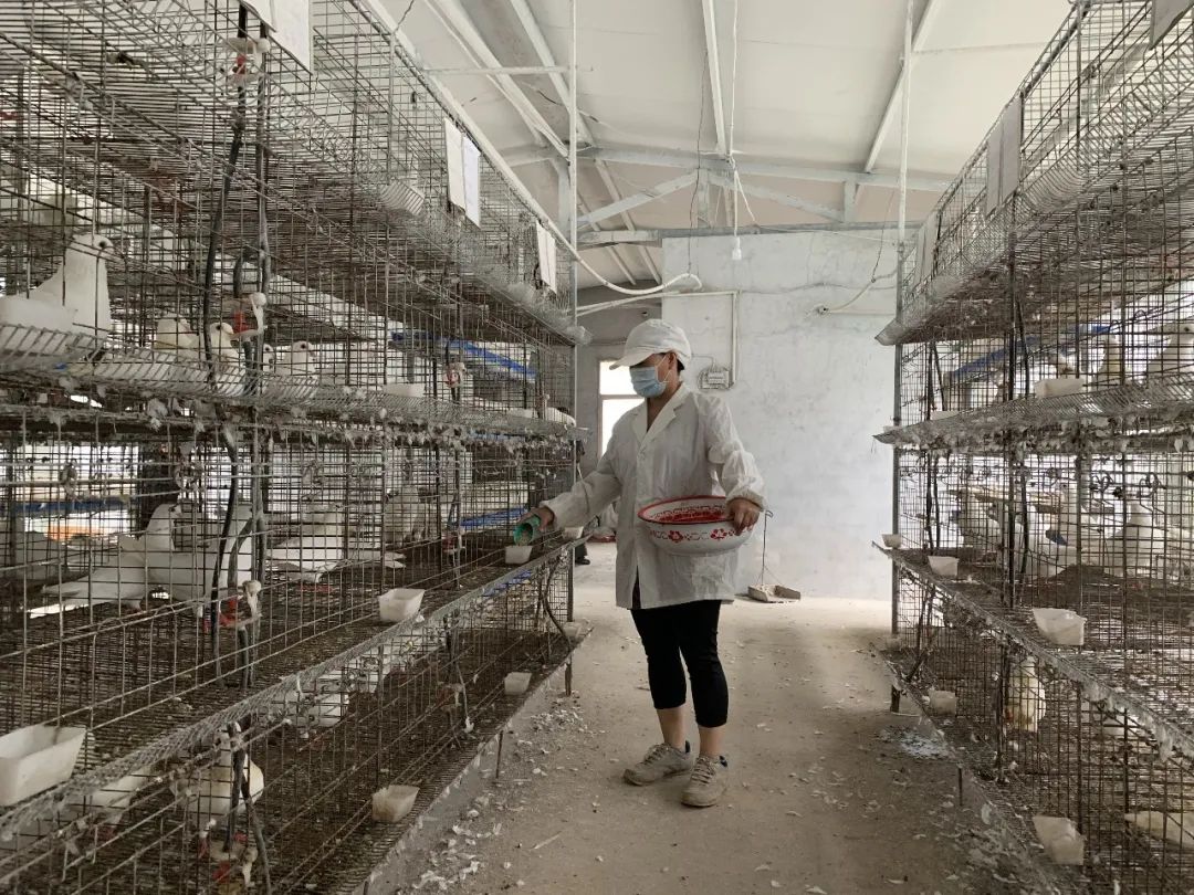 2016年,基地完成选址,兴建厂房。2017年,第一批蛋鸽顺利入住“新家”。发展至今,已形成喂养蛋鸽2万羽,以蛋鸽养殖、鸽蛋销售为主要产业,占地150多亩的蛋鸽养殖扶贫产业基地,年收入达80万元以上。