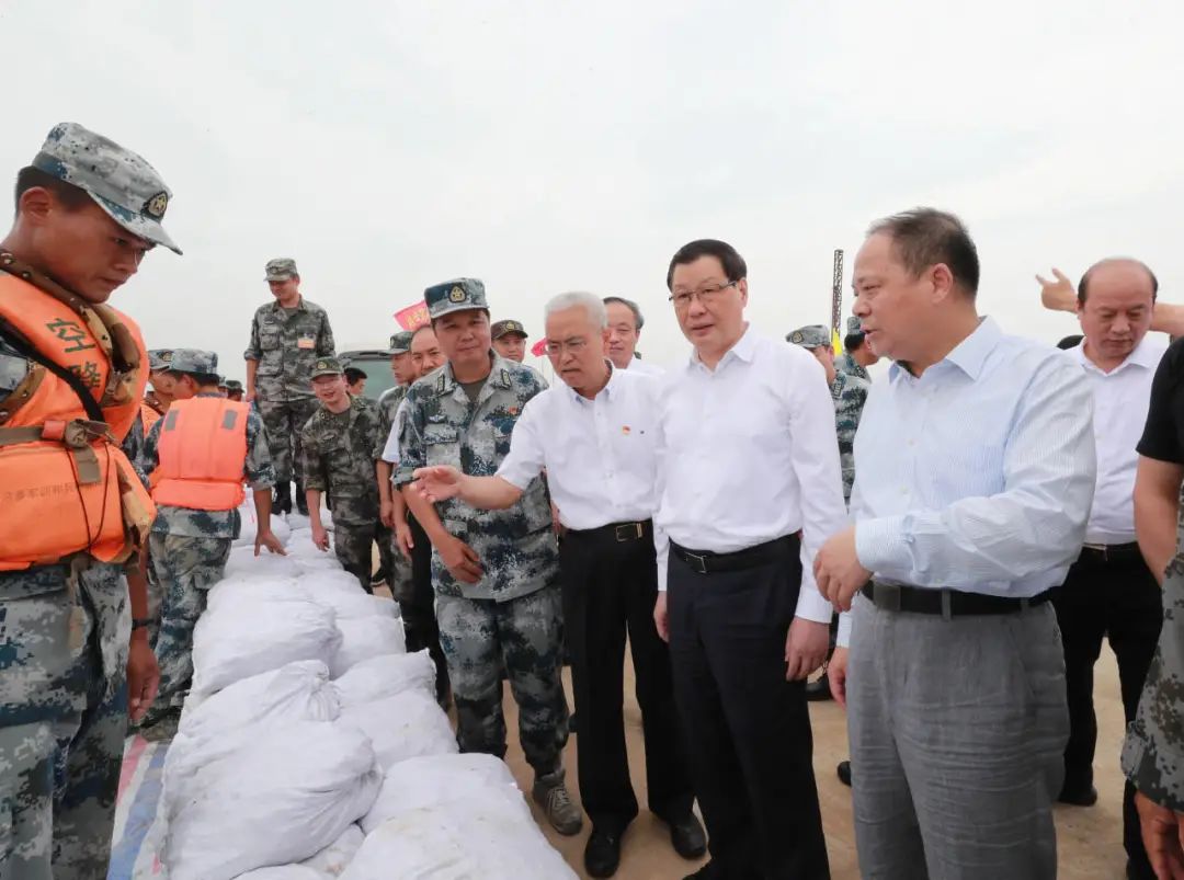 中部战区副司令员张义瑚、副参谋长邓玉恩和省军区司令员马涛正指挥解放军指战员、民兵预备役人员,与广大干群一起,在洪湖围堤花园段加固堤防。应勇代表省委省政府和全省人民向参与防汛救灾的人民子弟兵致以崇高敬意!勉励当地民兵发扬洪湖赤卫队精神,守牢堤坝、保护家乡。