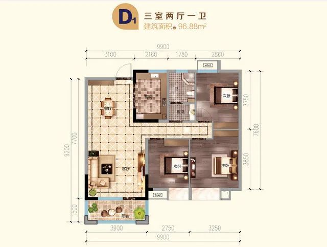 9.6万左右就可以拥有阔绰的两房两厅一卫,这对于手上资金不太充裕的刚需族来说,是个不错的选择。