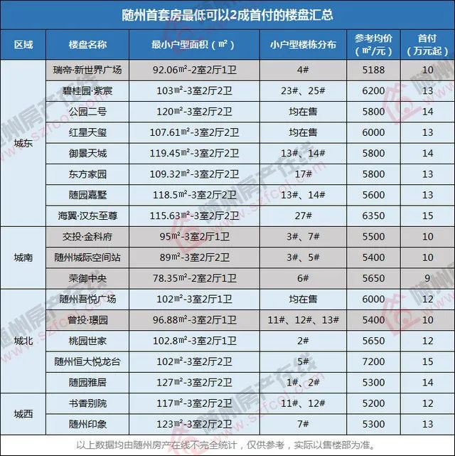 纵观如今的随州楼市,各大片区的房价普遍保持在5字头和6字头,而在这之前首套房最低首付一般都是3成,随便买套三房首付起码得20万+。