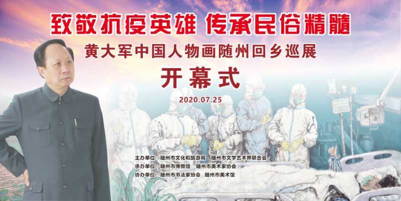 由随州市文联、市文旅局举办的《致敬抗疫英雄 传承民俗精髓一一黄大军中国人物画随州回乡巡展》 将于7月25日上午9时在随州博物馆一楼大厅举行。