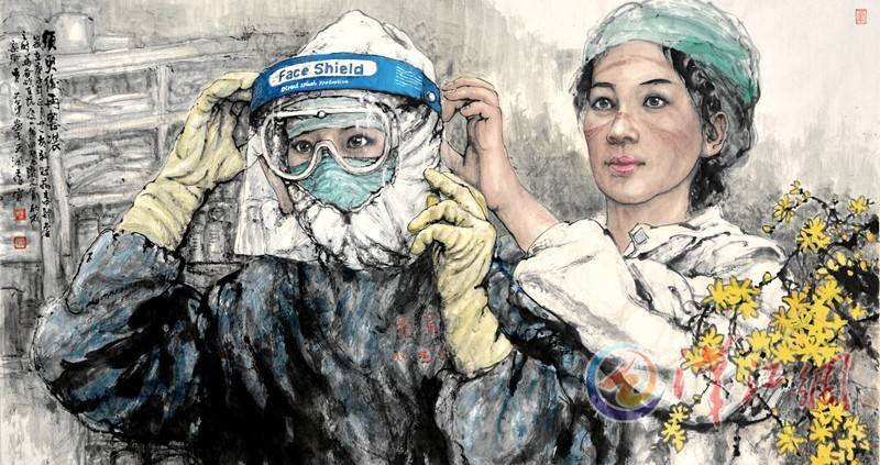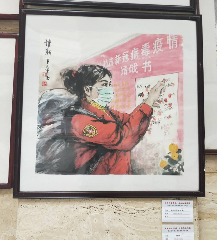 今天上午九点,由随州市文化和旅游局、随州市文学艺术届联合会主办的“致敬抗疫英雄,传承民俗精髓—黄大军中国人物画随州回乡巡展”在随州博物馆开幕,展出了黄大军的65幅作品,除一幅自画像外,其余作品分为三个版块:抗疫英雄、童年回忆以及往事如烟,其中“抗疫英雄”展出10幅作品,“童年回忆”37幅,“往事如烟”17幅。