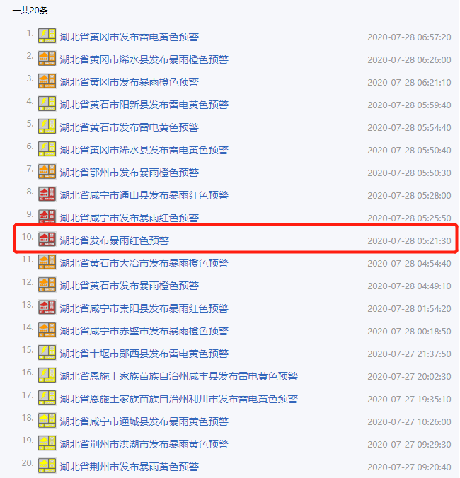 湖北省发布暴雨红色预警