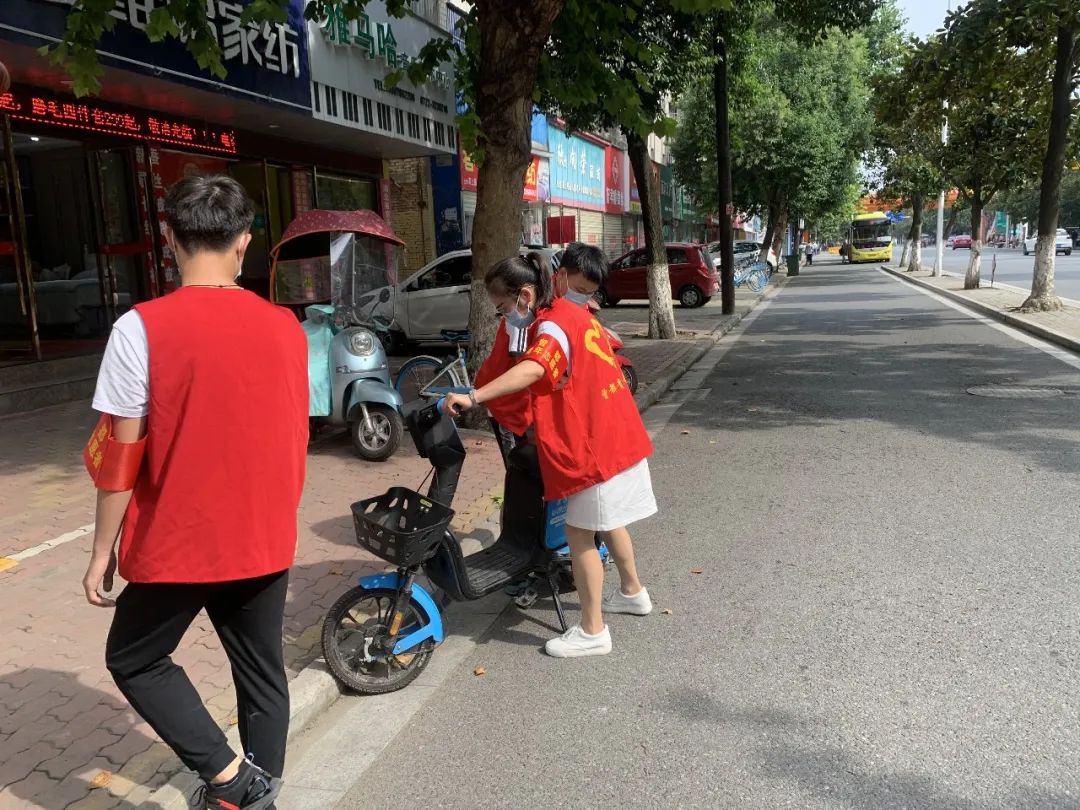 活动中,志愿者们兵分三路,集中清理城区主干道两旁乱停乱放的共享单车,将车辆扶正,停放到指定区域,并有序摆放。同时引导前来停车的市民将共享单车分类停放到指定地点,并向他们发放绿色出行倡议书,倡导宣传文明共享、绿色出行的理念。