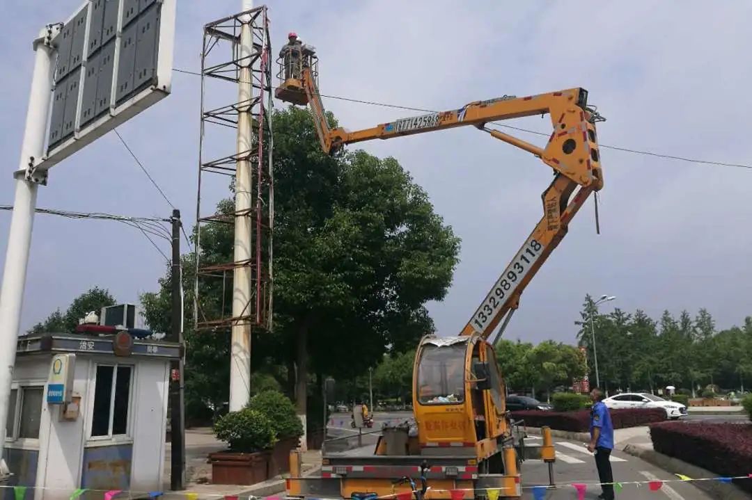 “为加强户外广告规范化管理力度,维护市容环境整洁美观,提升城市形象和品位。北郊办事处开展大型户外广告整治行动,集中对烈山大道上的废弃破损大型高立柱广告、公交站台广告牌、商铺招牌依法予以拆除,不断改善城市环境。”正在现场维持秩序的北郊办事处宣传干事喻峰说。