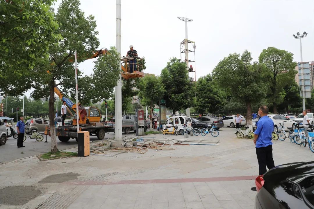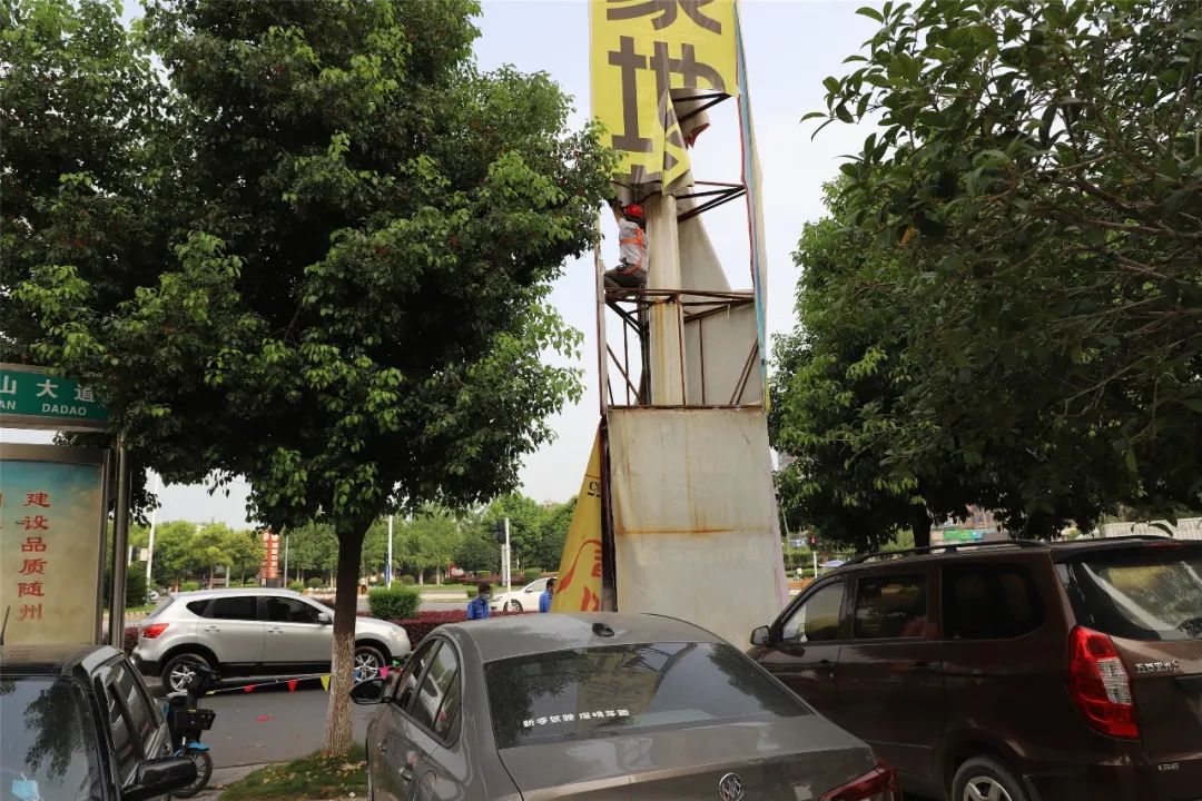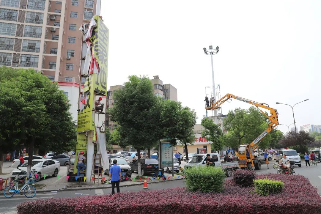 对于不能自行拆除的广告牌,北郊办事处集中组织人员、聘请专业拆除队伍、利用专业工具,对前期摸排登记的违规设置广告牌进行拆除。截至目前,共拆除大型高立柱户外广告牌4处、公交站台广告牌1处、破损商铺招牌10处。