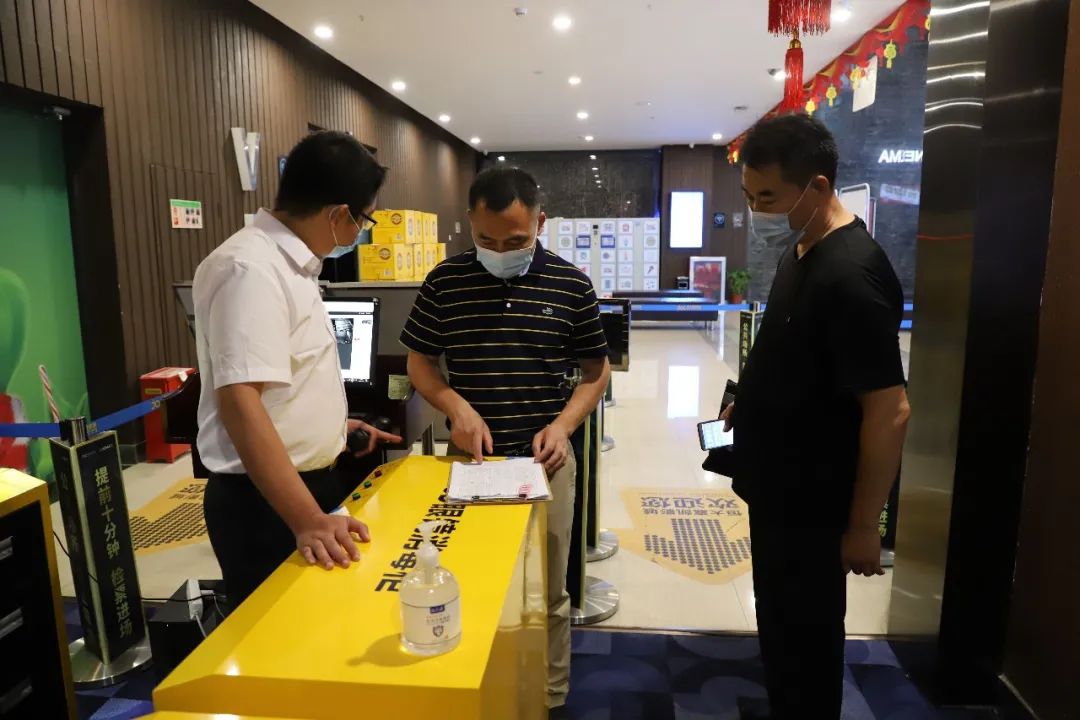 刘永华先后来到银兴绿州电影城、随州恒大嘉凯影城、大地影院(曾都大润发店)、天河国际影城,重点检查了观众登记测温、疫情防控物资、隔离场所设置、定期消毒、员工健康登记、防疫培训等疫情防控措施和安全生产的落实情况,并对落实影院常态化疫情防控工作提出具体要求。