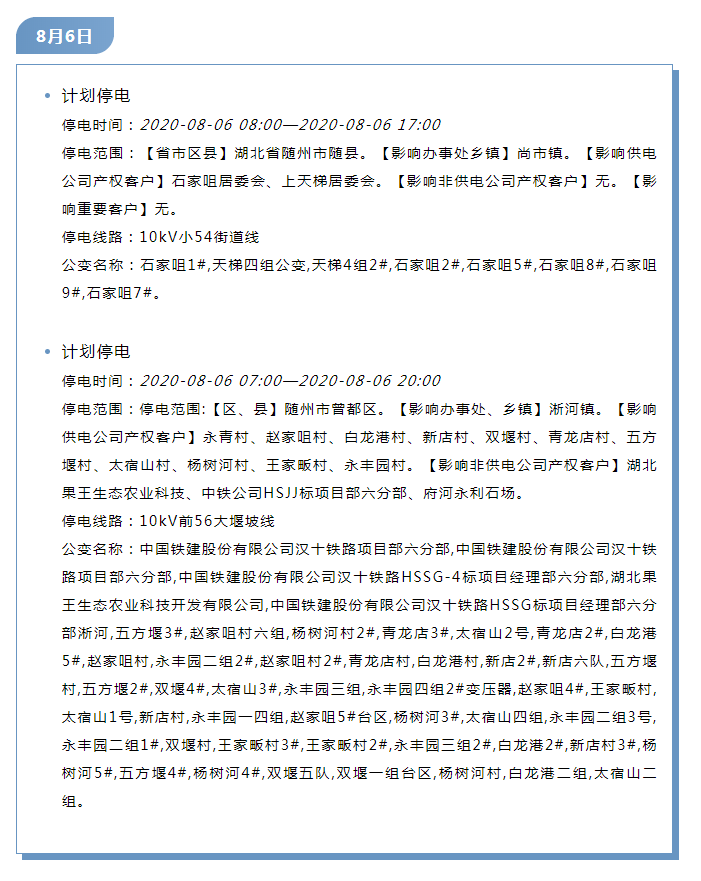 1)停电结束时间可能根据天气原因和特殊情况顺延。