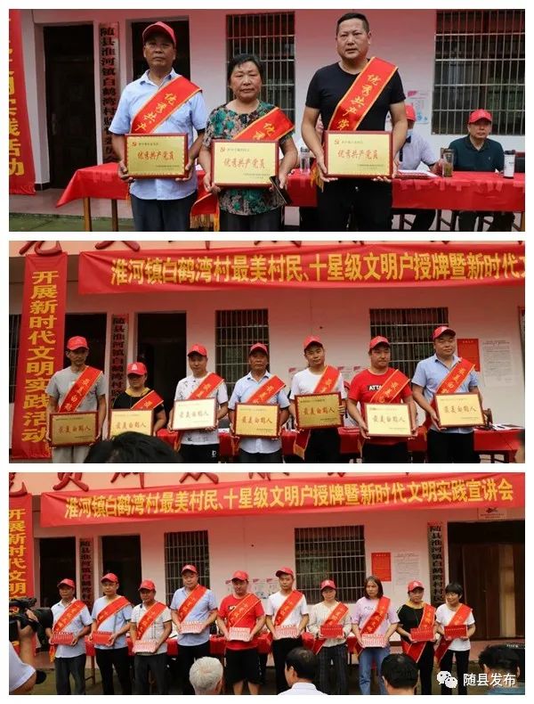 近日,淮河镇白鹤湾村举办最美村民、十星级文明户授牌暨文明实践宣讲活动。