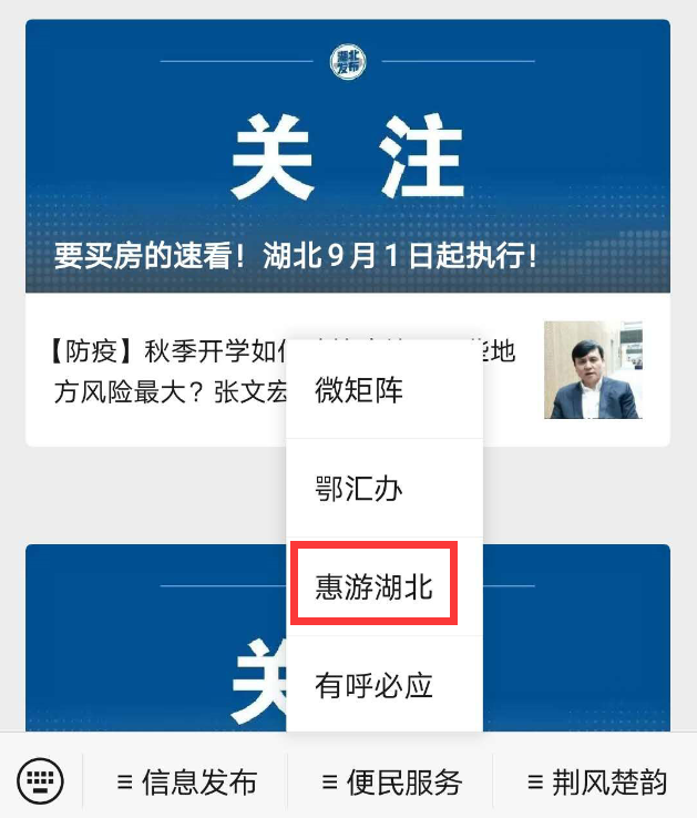 点击“便民服务”-“惠游湖北”菜单