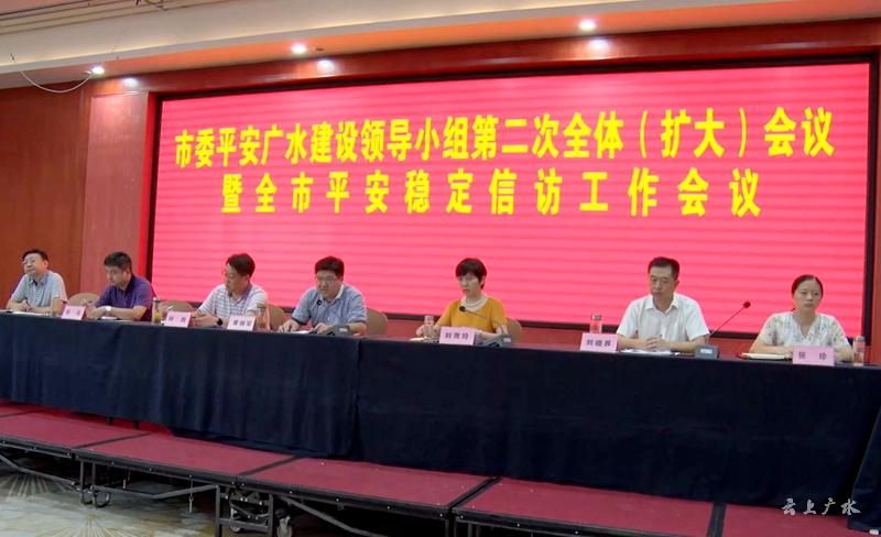 8月7日,广水市委平安广水建设领导小组第二次全体(扩大)会议暨全市平安稳定信访工作会议召开,深入贯彻习近平总书记关于平安建设的重要指示精神,贯彻落实省委书记应勇讲话精神,通报广水市平安建设和信访稳定工作情况,查找弱项短板,听取有关单位针对存在问题和下步整改措施的汇报,对进一步推动平安广水建设各项工作进行研究部署。