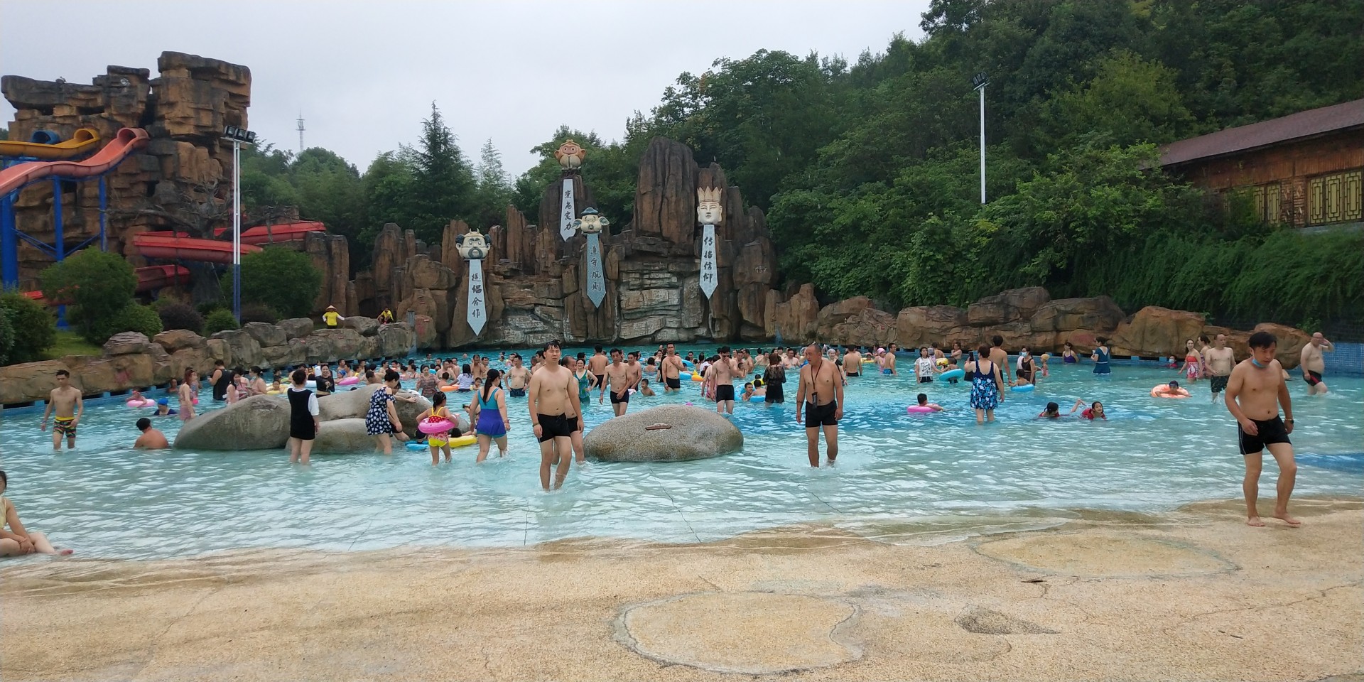新引进的泼水节项目吸引了众多游客与工作人员互动