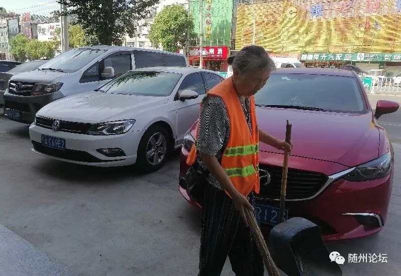 上午8时,气温已经很高。在随城舜井大道鹿鹤市场附近路段,环卫工人申明友头戴草帽、穿着橘红色马甲,正拿着扫帚专心致志地清扫着路边垃圾,汗水顺着脸颊一滴滴落下,后背的衣服也被汗水浸湿留下一大片印记。长期户外工作,他的皮肤被晒得黝黑。