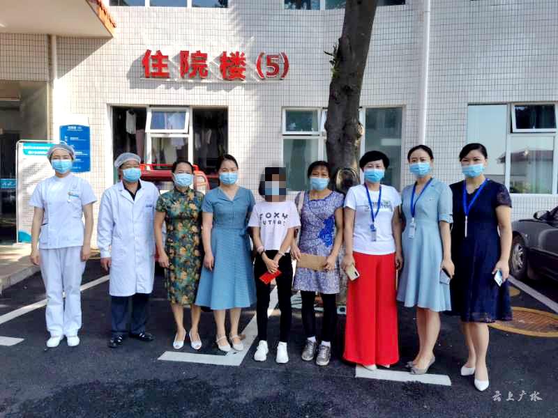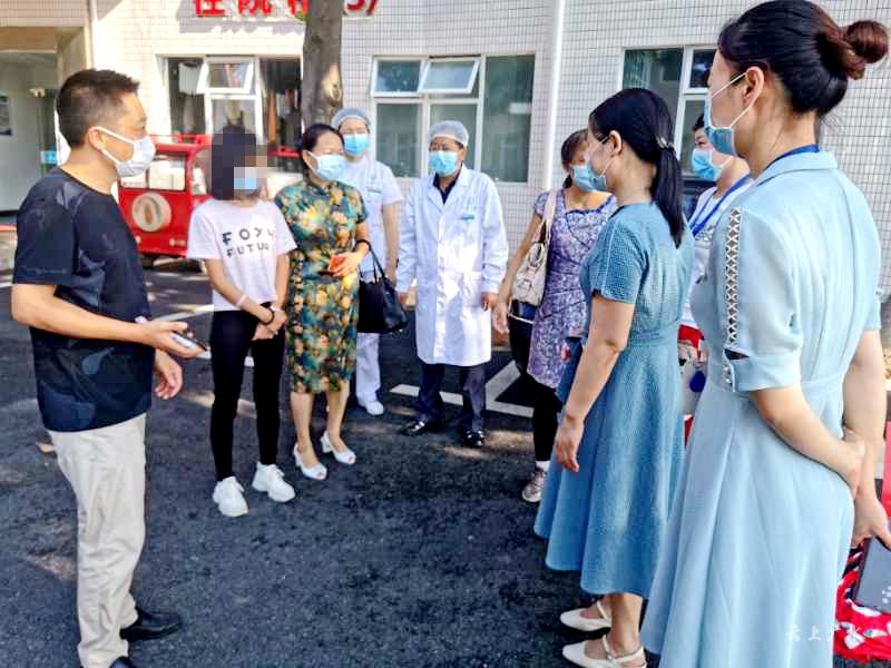 8月13日,在广水市第二人民医院感染性疾病科住院楼前,广水市一中、武胜关镇中心中学、广水市二医院等单位相关负责人看望了感染结核住院的广水市一中高二学生方同学,并送去爱心捐款。