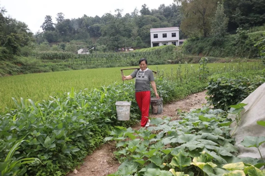 8月18日,走进洛阳镇永兴村一组公路旁一栋新修的楼房,王秀芳将门前庭院收拾得干净整洁,屋旁菜园子里,辣椒、黄瓜、豇豆、南瓜等蔬菜在阳光照射下,显得分外油绿。
